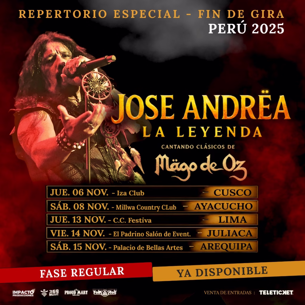La voz que marcó una era está de vuelta. Este 13 de noviembre de 2025, el histórico cantante José Andrëa, recordado por su paso en Mägo de Oz, llega a Lima para ofrecer un concierto inolvidable en el Centro de Convenciones Festiva, como parte de su Gira Nacional 2025 por Perú, bajo la producción de Impacto Producciones.